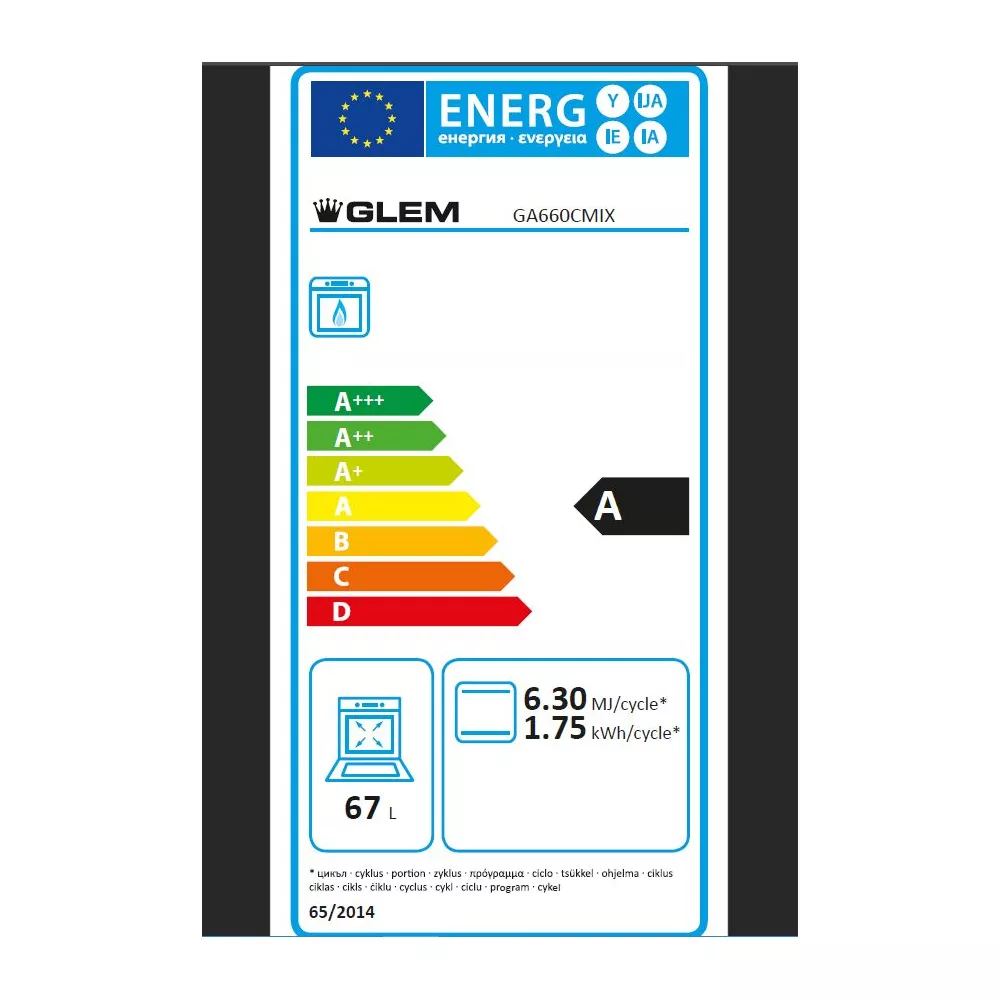 Dotée de quatre foyers gaz de différentes puissances, la GA660CMIX offre une flexibilité de cuisson exceptionnelle avec un total de 7,5 kW. L’allumage électronique ’bouton’ et la sécurité gaz par thermocouples assurent une utilisation aisée et sécurisée. Le four gaz catalyse, avec ses quatre fonctions et un thermostat réglable de 130°C à 250°C, promet des cuissons précises et homogènes. Les panneaux catalytiques autonettoyants et la porte intérieure plein verre démontable facilitent l’entretien, tandis que le coffre de rangement chauffe-plat est un atout supplémentaire pour les fins gourmets. Avec une classe d’efficacité énergétique A, cette cuisinière est aussi un choix économe en énergie.