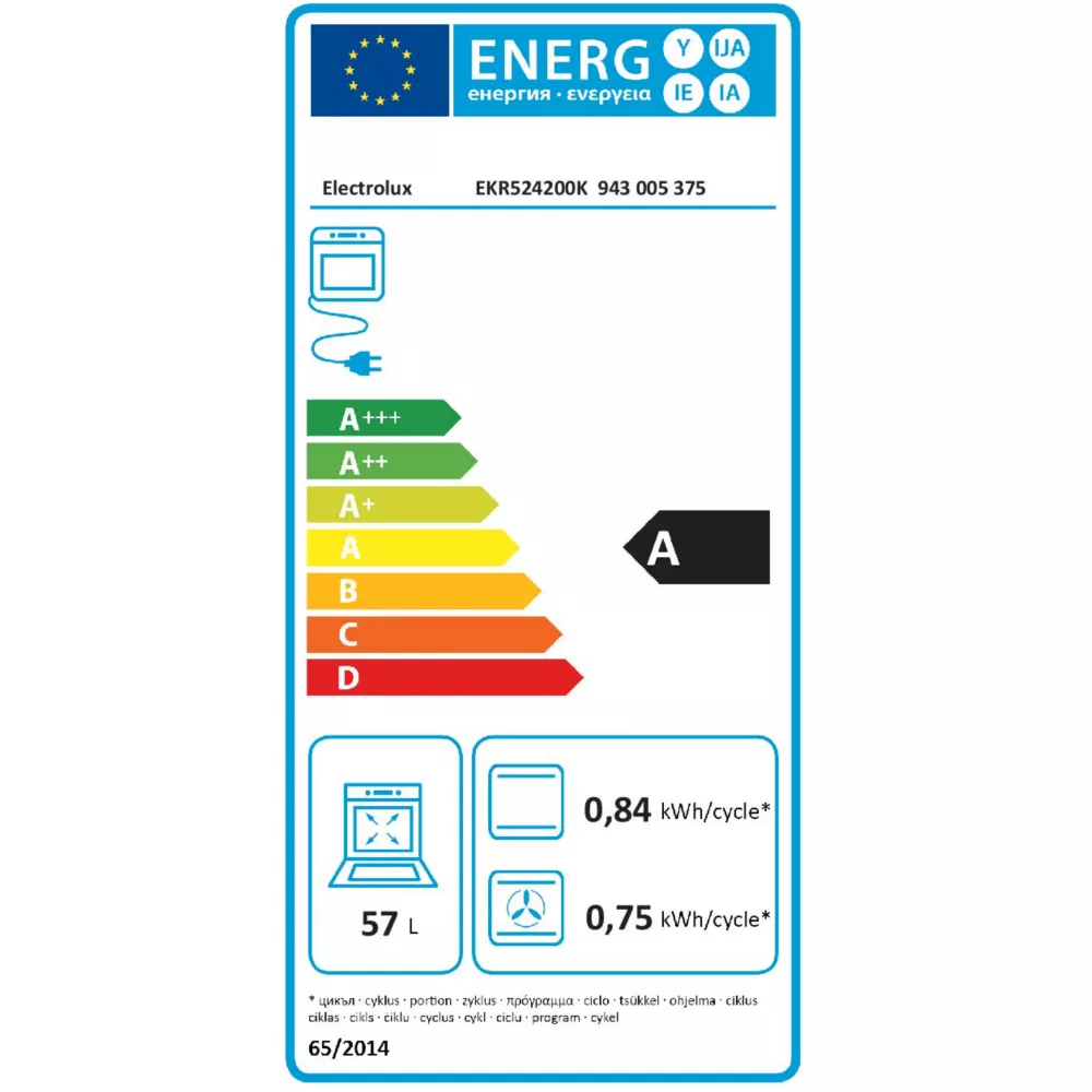 Consommation : 0,84 kW en convection naturelle, 0,75 kW en chaleur tournante