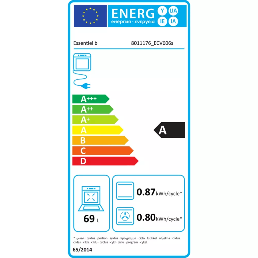• Valeurs du label รฉnergie :ย Label รฉnergie A, Consommation en convection naturelle 0,87 kW, Consommation en chaleur tournante 0,8 kW