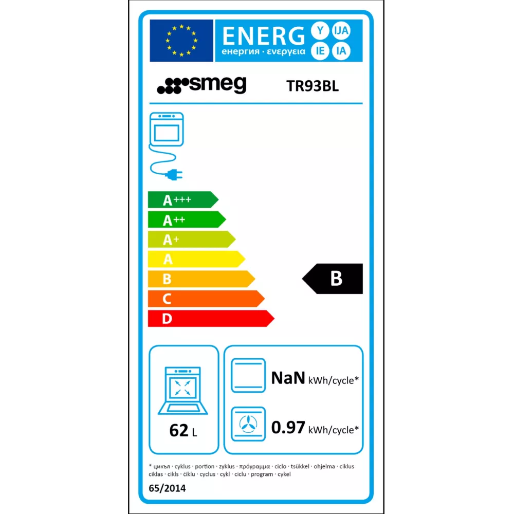 - Valeurs du label énergie : Label énergie A, Consommation en convection naturelle 0,97 kW, Consommation en chaleur tournante 0,77 kW