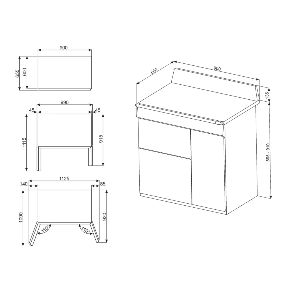 - Dimensions l x h x p : 90.3 x 90 x 60 cm