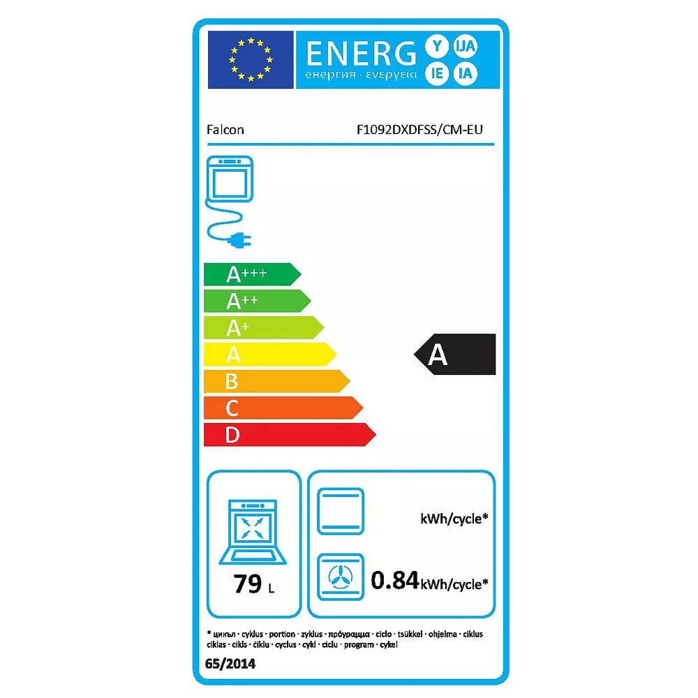 - Valeurs du label énergie : Label énergie A, Consommation en convection naturelle 0,84 kW, Consommation en chaleur tournante 0,84 kW