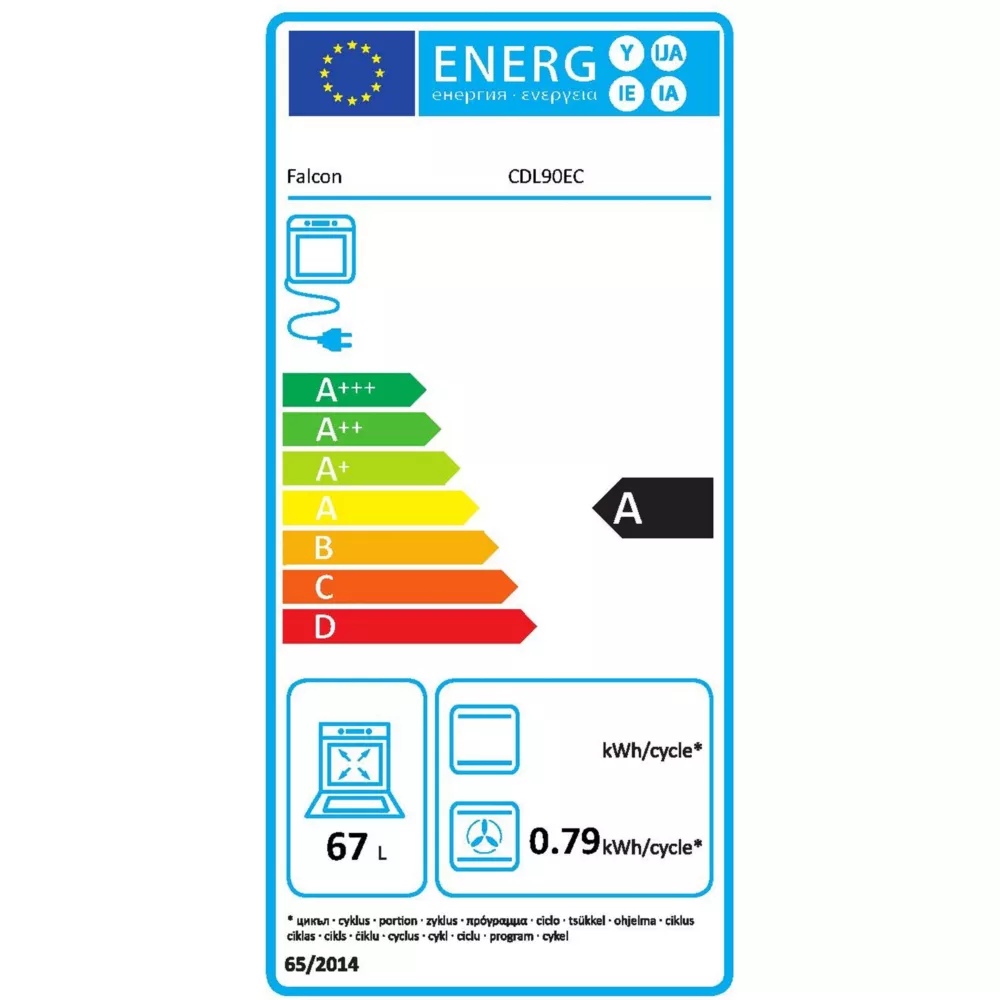 - Valeurs du label énergie : Label énergie A, Consommation en convection naturelle 0,88 kW, Consommation en chaleur tournante 0,79 kW