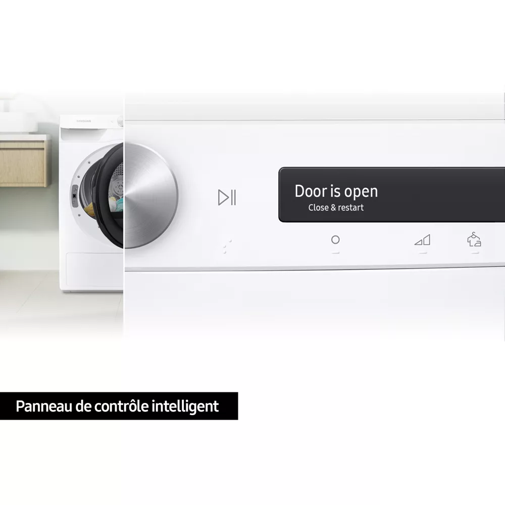Le design sobre et moderne du sรจche-linge SAMSUNG DV80T5220AW apportera une touche dโรฉlรฉgance ร votre intรฉrieur.ย Son panneau de contrรดle clair et high-techย se transformera en