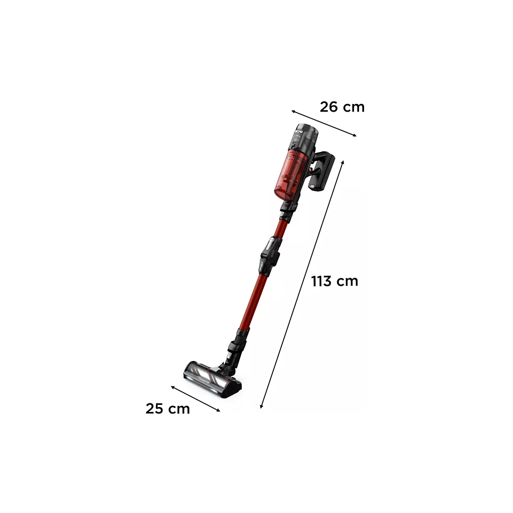 • Brosse motorisée avec éclairage LED : Elle s’adapte à tous les types de sols. Son éclairage LED permet de mieux voir la poussière et plus loin pour un nettoyage plus efficace