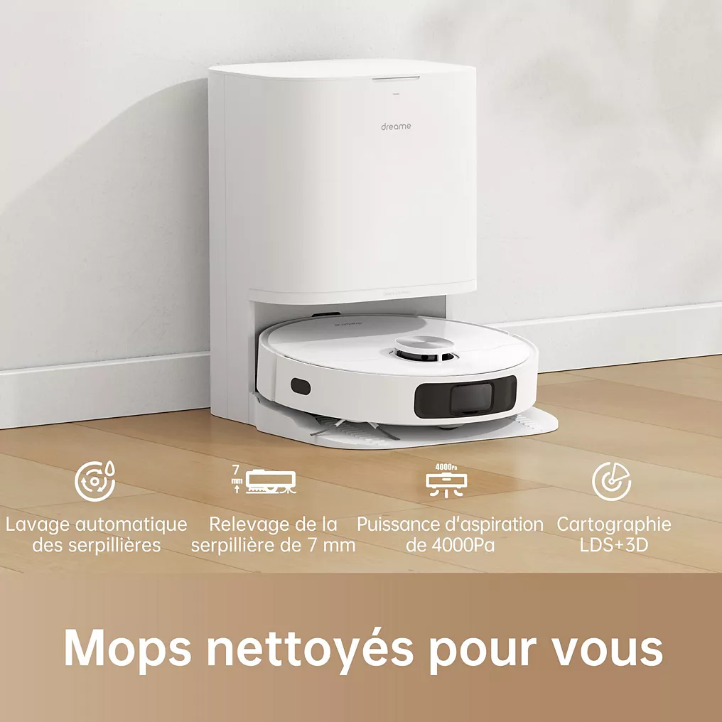 - Remplissage automatique du réservoir d’eau du robot : Oui