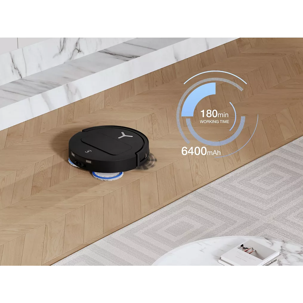 - Reprise automatique du nettoyage : Une fois rechargé, l’aspirateur reprend sa session de nettoyage là où il s’est arrêté