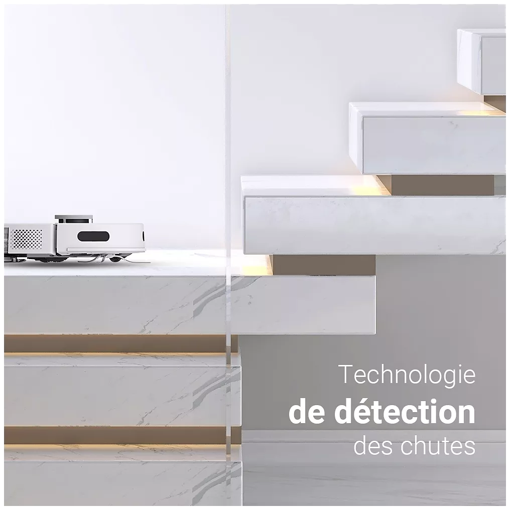 - Détection des marches / du vide : oui, permet d’éviter la chute de l’aspirateur
