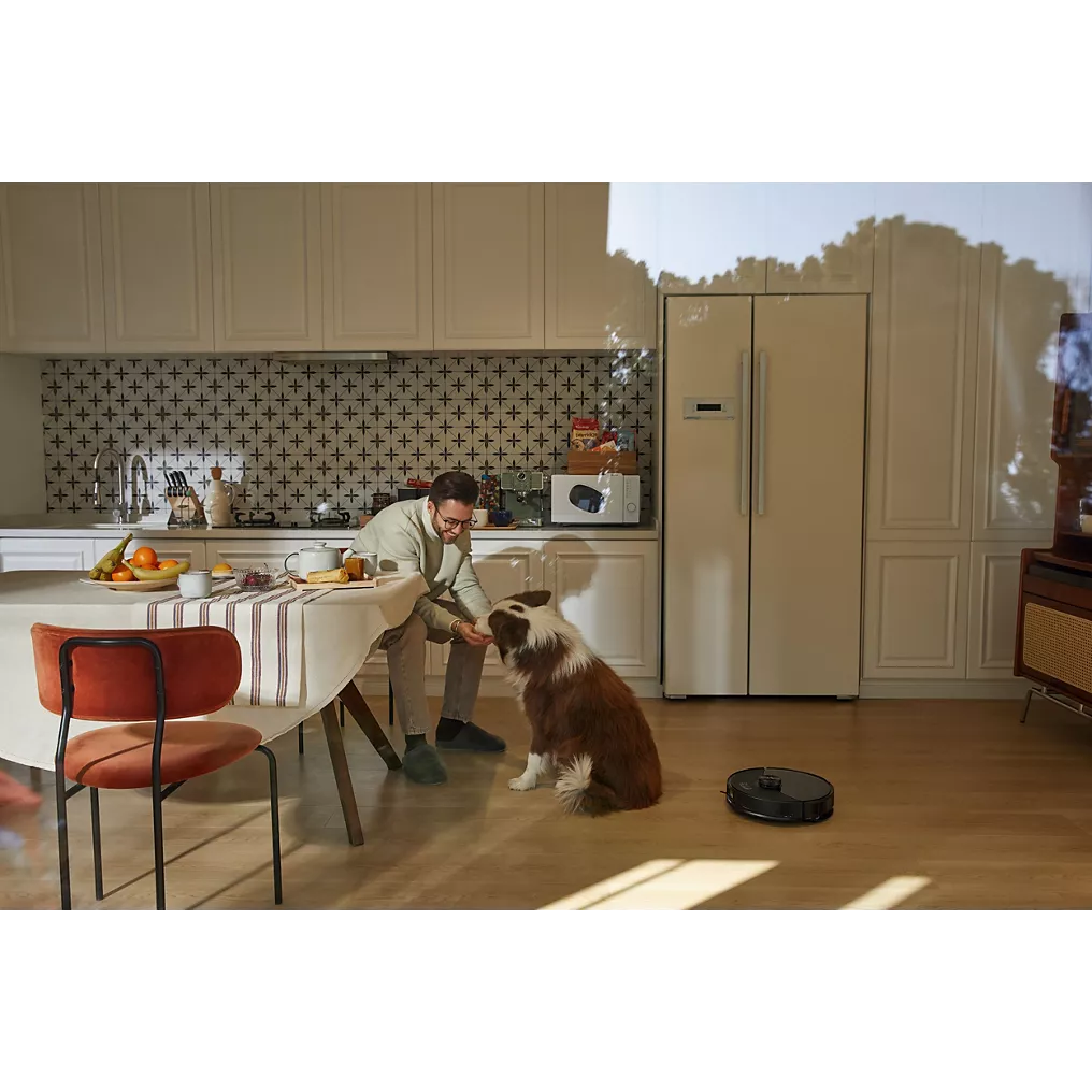 Le ROBOROCK S8 MaxV Ultra Black se distingue par sa capacité à aspirer et laver les sols avec une efficacité remarquable. Doté d’une technologie de navigation par cartographie, il analyse en temps réel son environnement grâce à des caméras et des lasers, assurant ainsi un nettoyage méthodique de vos espaces. Sa brosse Haute Efficacité s’adapte à tous les types de sols et prévient les enchevêtrements de poils, idéal pour les propriétaires d’animaux. Avec une puissance d’aspiration de 10000 pascals et une détection automatique des tapis, le S8 MaxV Ultra Black ajuste sa puissance pour un nettoyage en profondeur, tandis que sa serpillère déportée garantit un lavage optimal des angles et des bords.