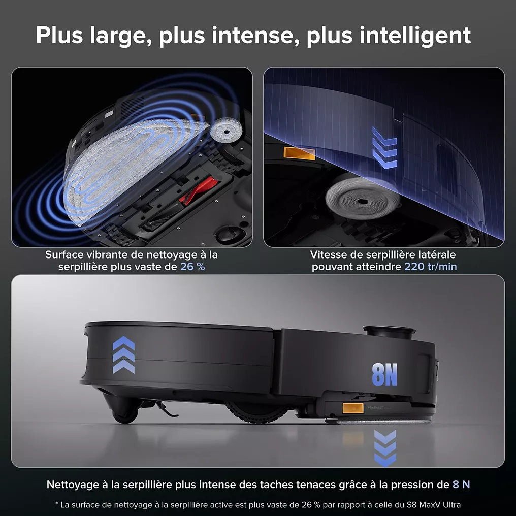 - Méthode de navigation : Cartographie 3D avec système de navigation personnalisable, zone spécifique à nettoyer, obstacles à éviter, trajectoire précise