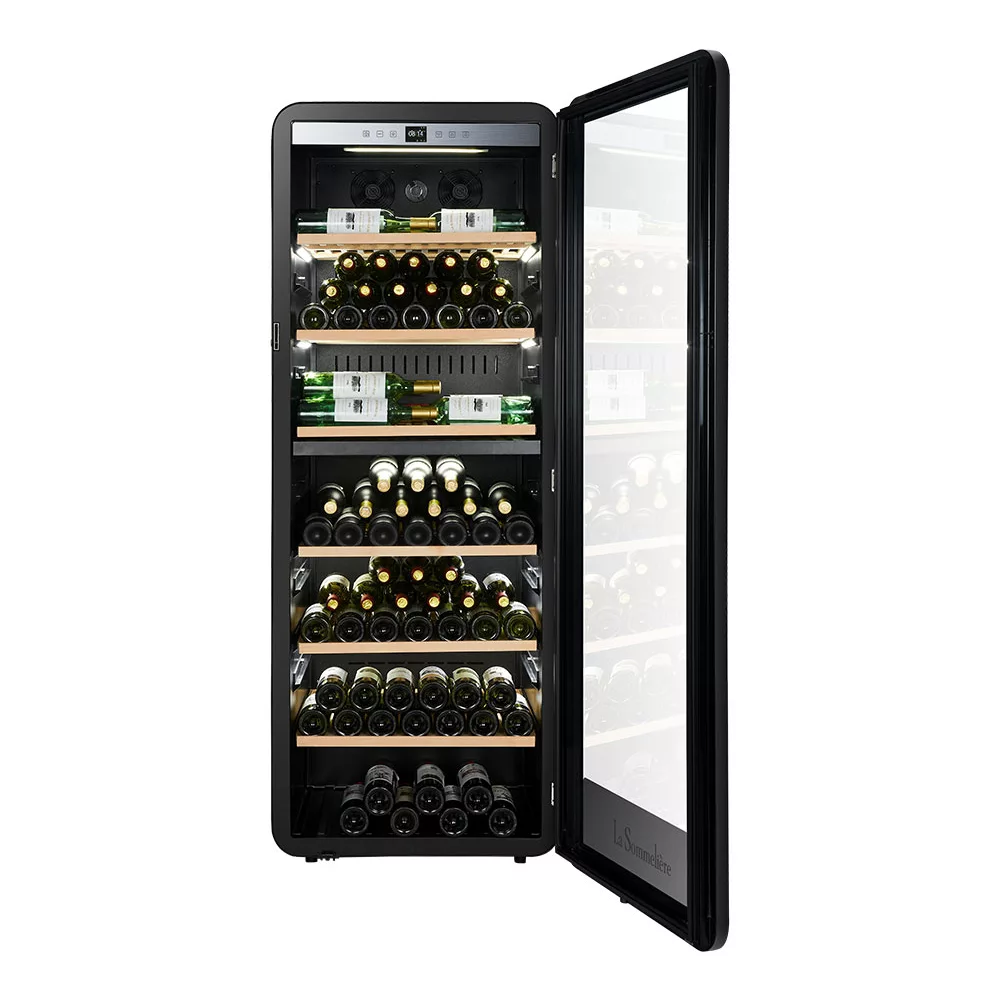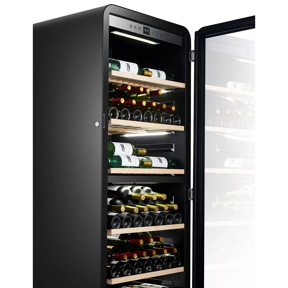 - Type d’appareil : cave à vin polyvalente, elle combine plusieurs plages de températures en fonction des zones, soit pour vieillir le vin soit pour le mettre à la température de service. Idéale pour les œnophiles et collectionneurs de grands crus.