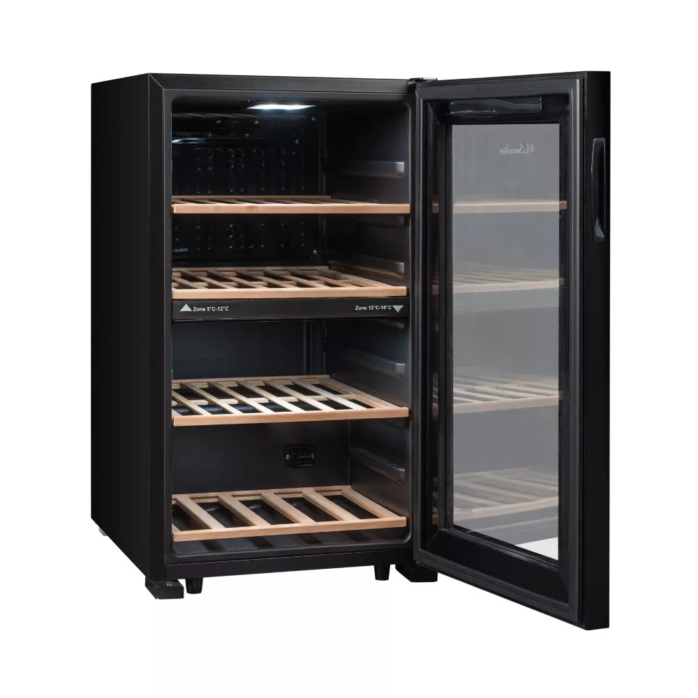 La cave à vin LA SOMMELIERE LS51.2Z intègre une technologie de froid brassé, qui permet de répartir équitablement la température dans tout l’appareil et de conserver au mieux les bouteilles de vin. Afin de profiter pleinement de tous les arômes de vos vins, vous pouvez adapter les températures, avec 2 zones distinctes. Ses amplitudes de fonctionnement sont de 5 °C à 12 °C dans la zone supérieure et de 12 °C à 18 °C dans la zone inférieure. Ainsi, vous pourrez mettre à température de dégustation plusieurs types de vin, dans une seule et même cave !