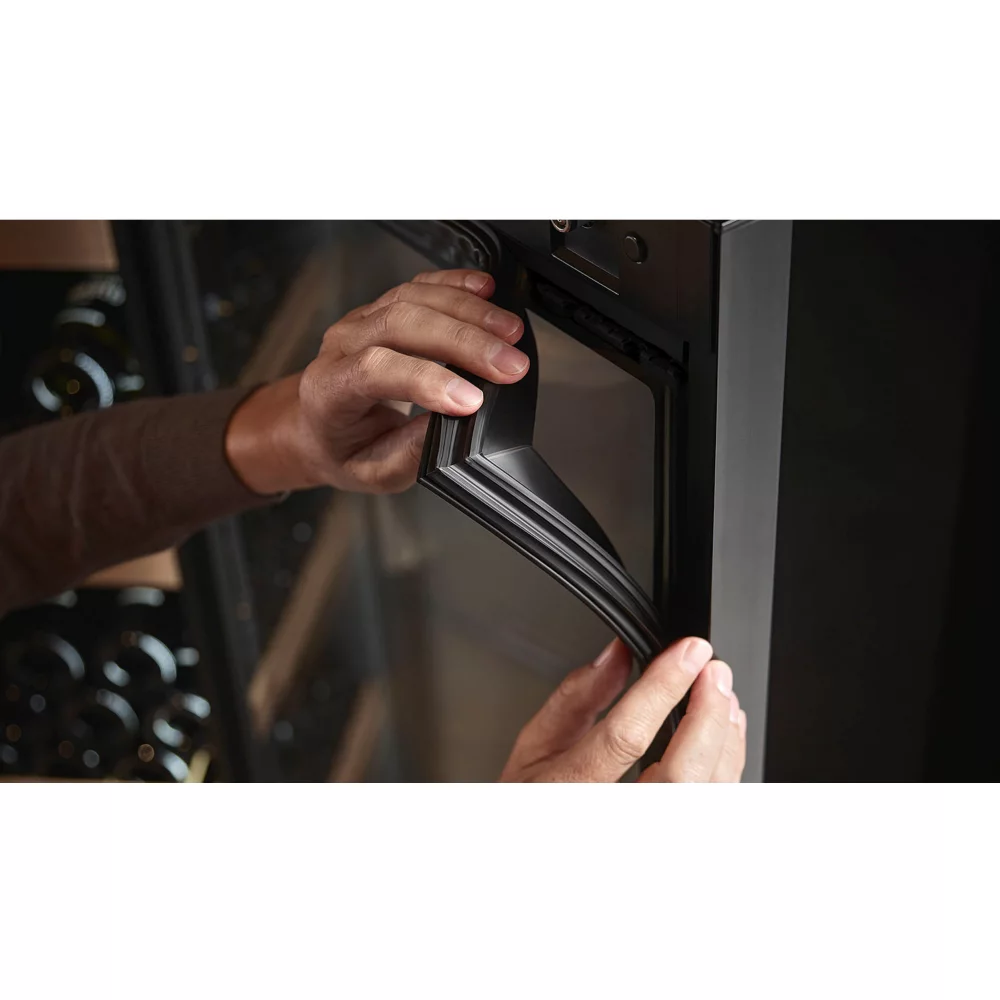- Type de porte : vitrée, permet de visualiser facilement les bouteilles sans avoir à ouvrir la porte, ce qui réduit la circulation de l’air dans la cave et donc la variation de la température. Le traitement anti-uv protège le contenu.