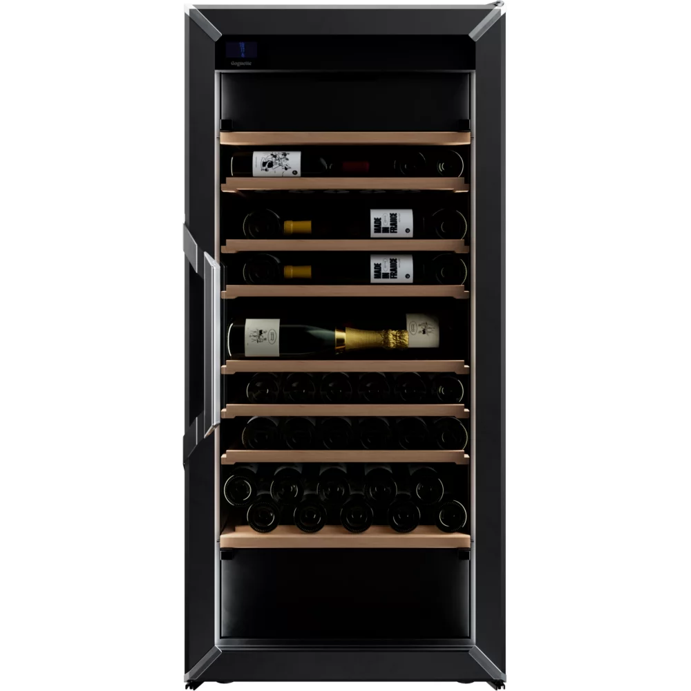 La cave à vin Goguette GMSM3TGDBKSCE01, fabriquée avec amour en France, incarne le savoir-vivre à la française en matière de dégustation de vin. Ce grand modèle coeur de gamme est une cave multi-usage conçue pour répondre aux besoins des amateurs de vin les plus exigeants. Avec une capacité maximale de 150 bouteilles, elle offre un espace de conservation optimisé grâce à ses 8 clayettes en bois de hêtre, dont 6 coulissantes, permettant un accès aisé et un rangement adapté à divers formats de bouteilles. La porte à double vitrage renforcée au gaz Argon, associée à une structure isolante en mousse polyuréthane, assure une protection contre la lumière et des vibrations limitées, préservant ainsi l’intégrité de vos précieux crus.