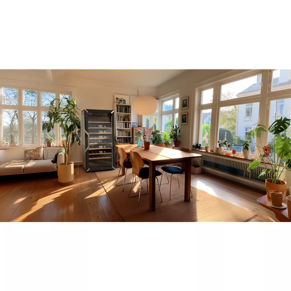 - Type d’installation : pose libre, installez votre cave où vous le souhaitez dans votre cuisine ou dans n’importe quelle autre pièce : cave, véranda.