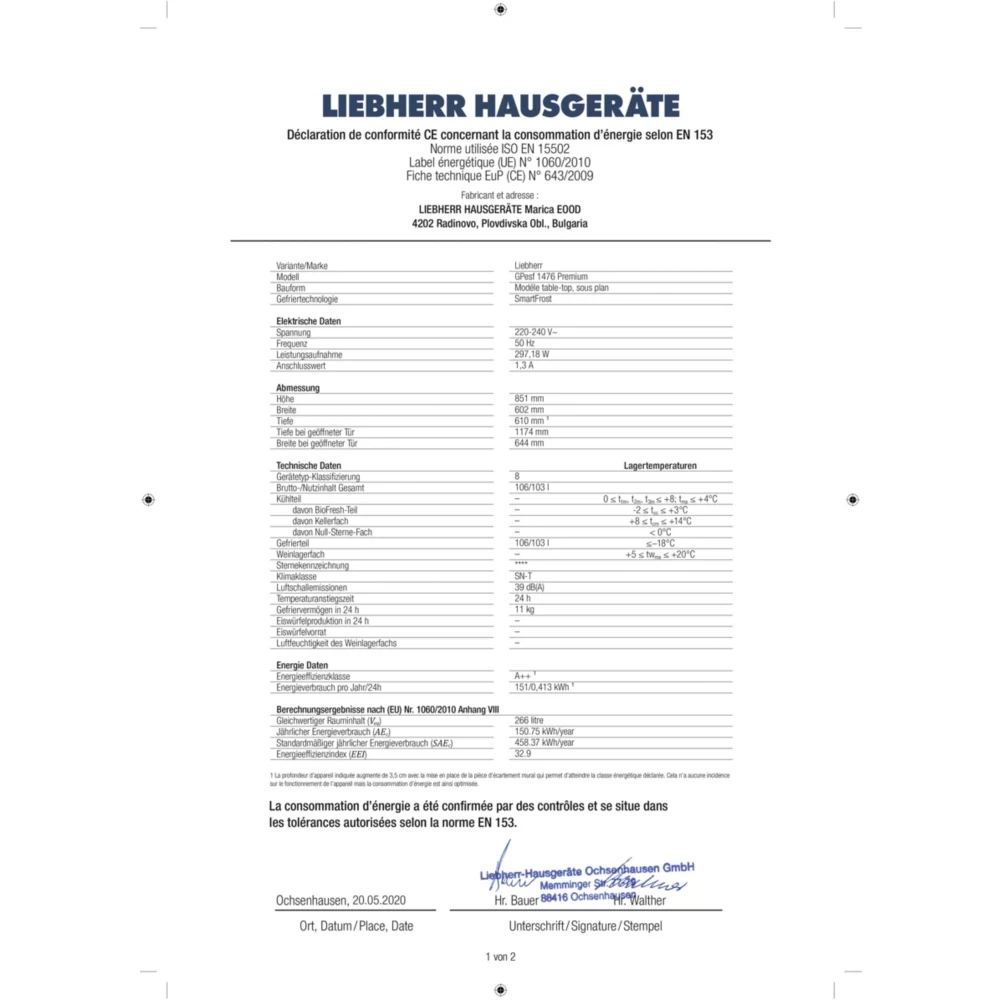 Congélateur top LIEBHERR GPesf1476-21