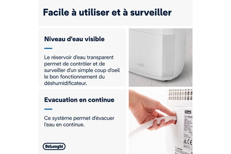 Avec un niveau sonore de 47 dB(A), il déshumidifie sans vous déranger, même la nuit ! Vous pouvez l’utiliser en continue et dans toutes les pièces de la maison.