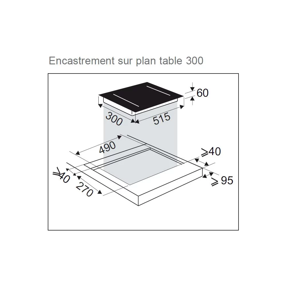 - LxHxP (encastrement) : 26.3 x 5.6 x 48.8 cm