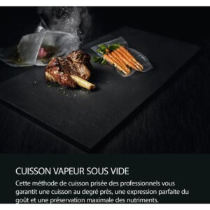 - Avantage de la cuisson sous vide : Garantie une cuisson uniforme, sans que les aliments ne dessèchent tout en conservant leurs nutriments et saveurs