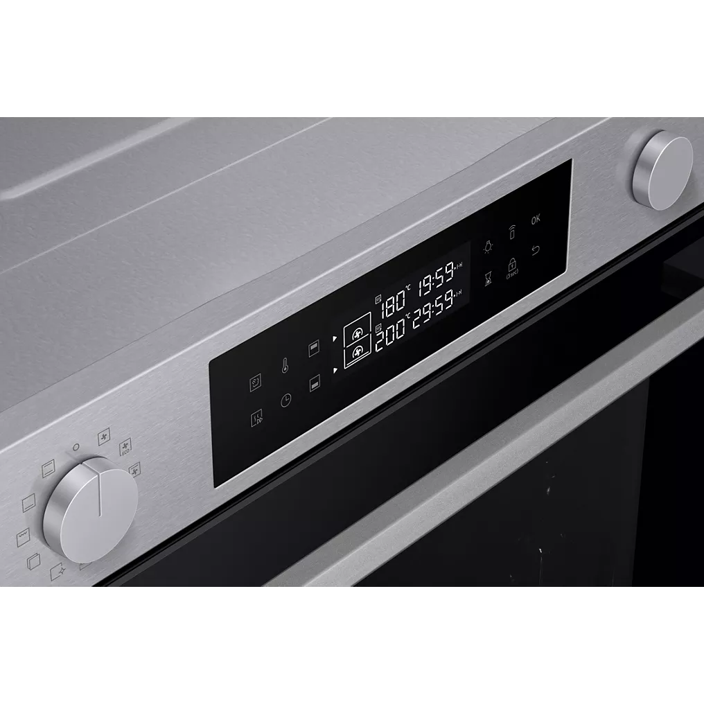 Avec sa belle couleur inox et ses doubles boutons rotatifs discrets, le four pyrolyse Samsung NV7B44503AS présente un design propre et élégant qui s’intégrera à merveille dans votre cuisine.