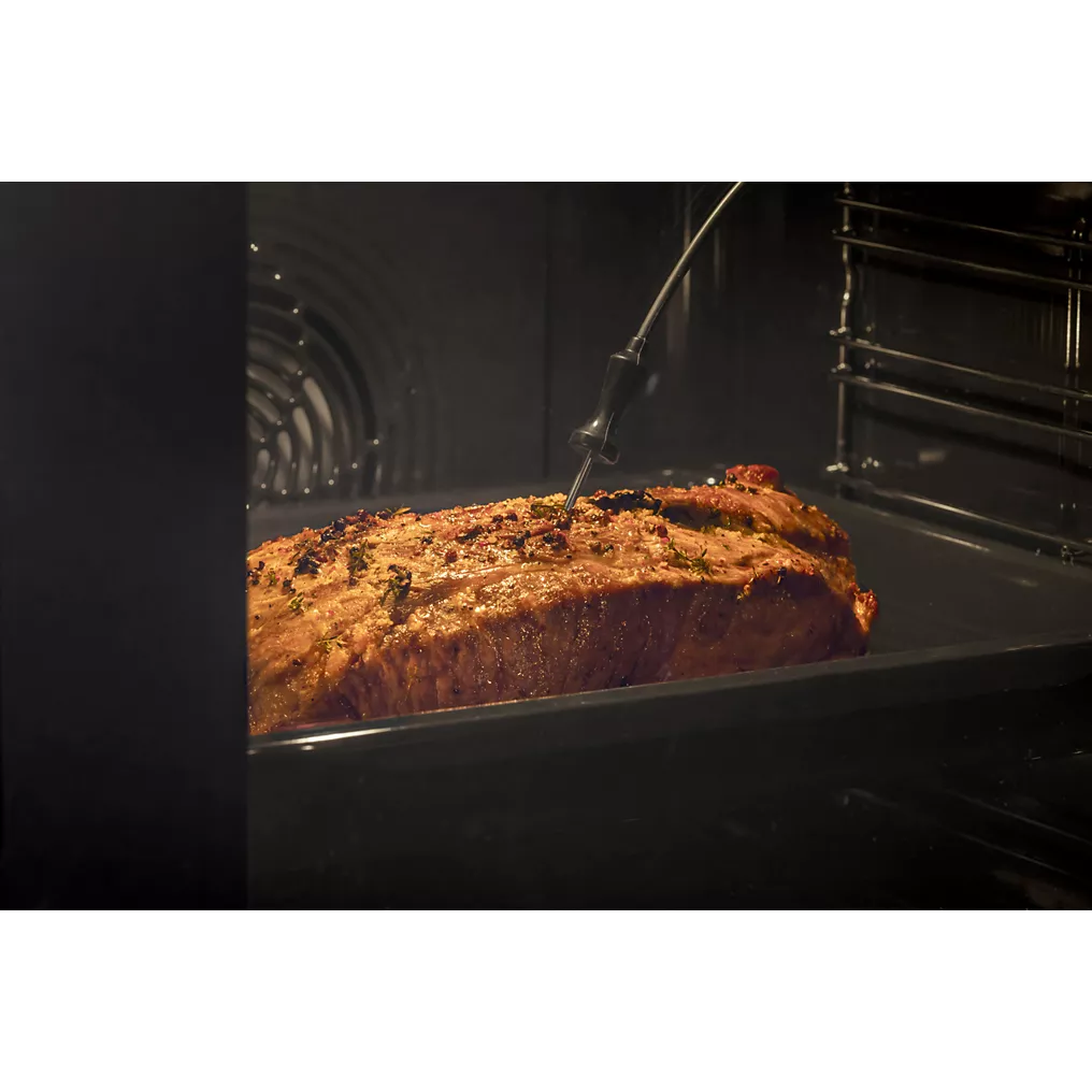 - Sonde de cuisson : la sonde de cuisson permet de surveiller la température à coeur de votre plat. Elle met fin au programme une fois la température atteinte. Vous avez la certitude de réussir vos cuissons même délicates