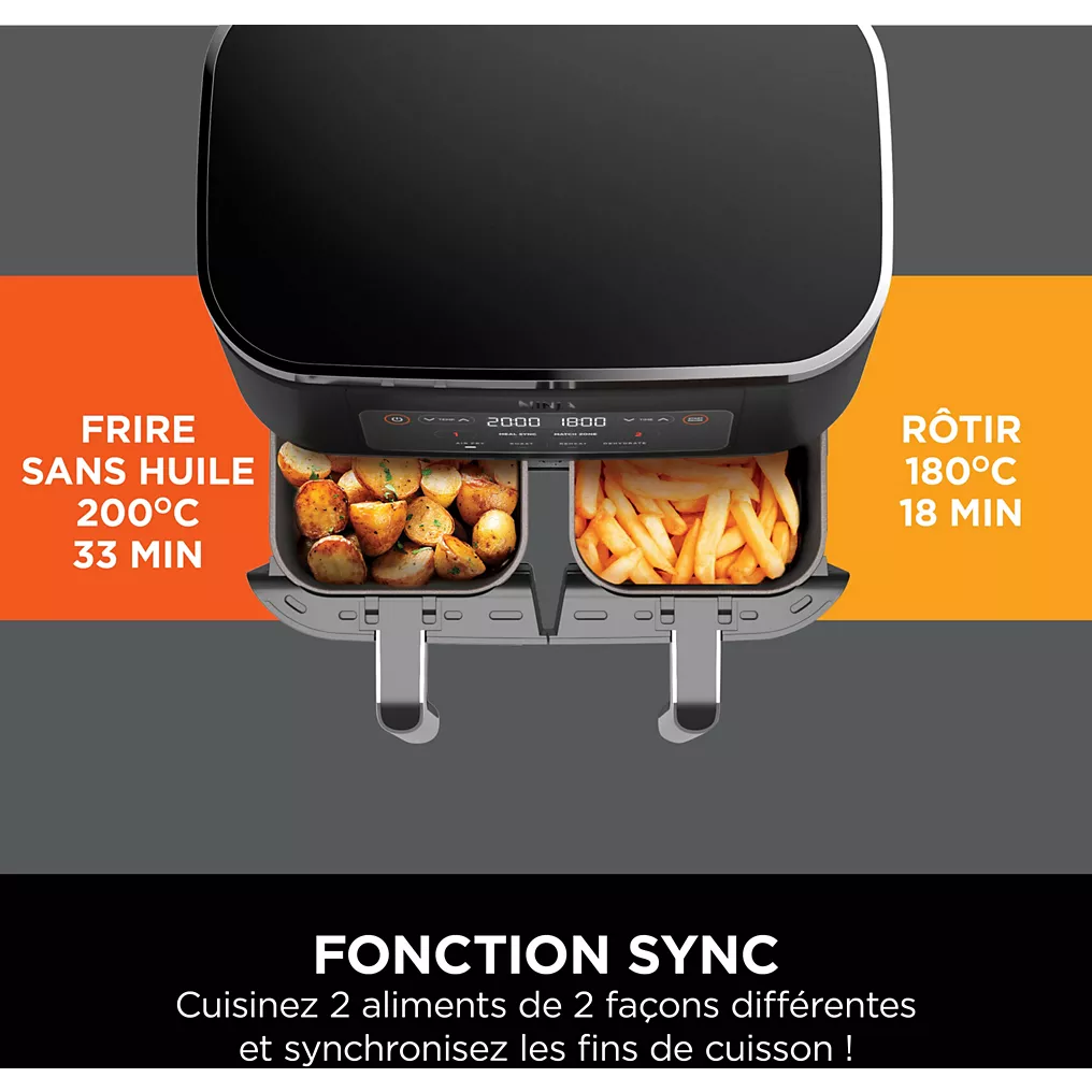 Grâce à la fonction SYNC, cuisinez différents ingrédients dans chaque tiroir et synchronisez vos fins de cuisson.