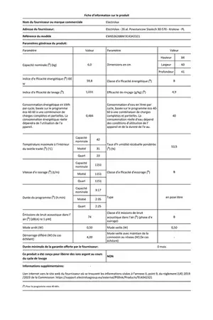 - Consommation en eau (programme éco) : 40,0 litres / cycle