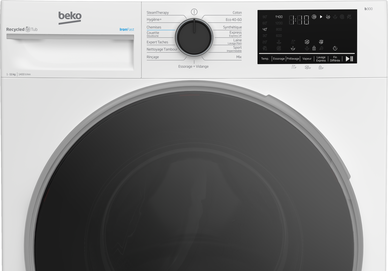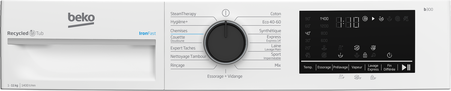 • Programmes : charge mixte, coton, éco, intensif, laine, synthétique