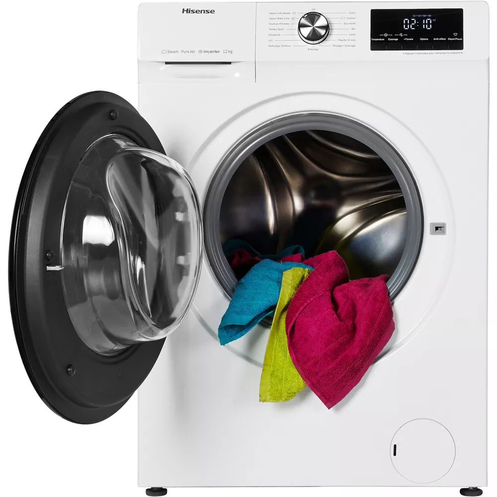 Le lave-linge hublot HISENSE WFQA1214EVJM combine puissance, grande capacité et technologie vapeur pour un linge parfaitement propre et hygiénique à chaque cycle. Idéal pour les familles de 5 personnes et plus, il offre un lavage efficace tout en restant économe en énergie.