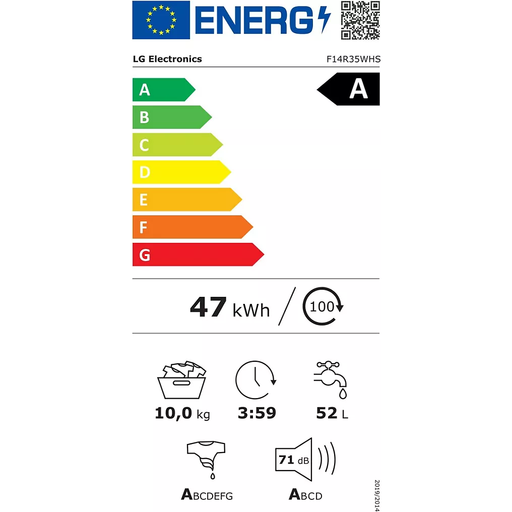 Le lave-linge hublot LG F14R35WHS allie performance de lavage, efficacité énergétique et technologie intelligente pour un entretien du linge impeccable au quotidien.