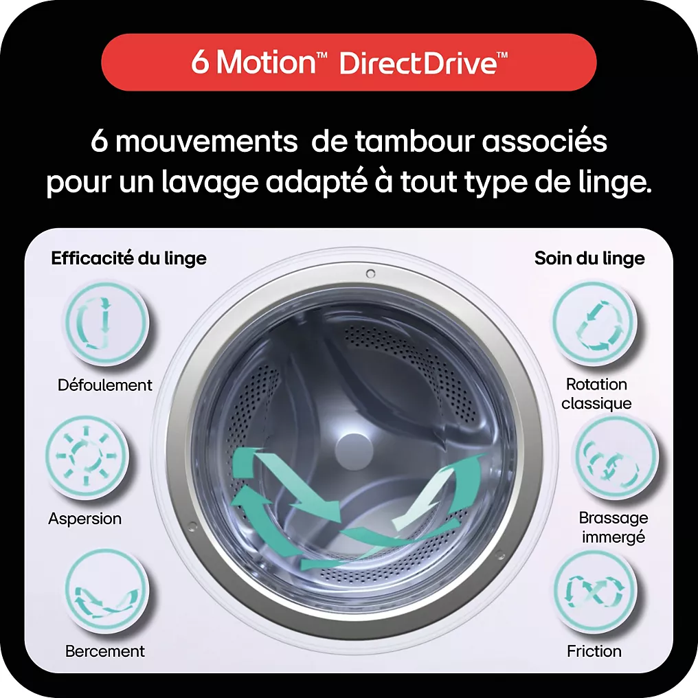 - AI DD : permet de détecter non seulement le poids, mais également le type de textiles. En fonction de ces paramètres, la machine adapte automatiquement les mouvements de tambour pour un soin du linge optimal.