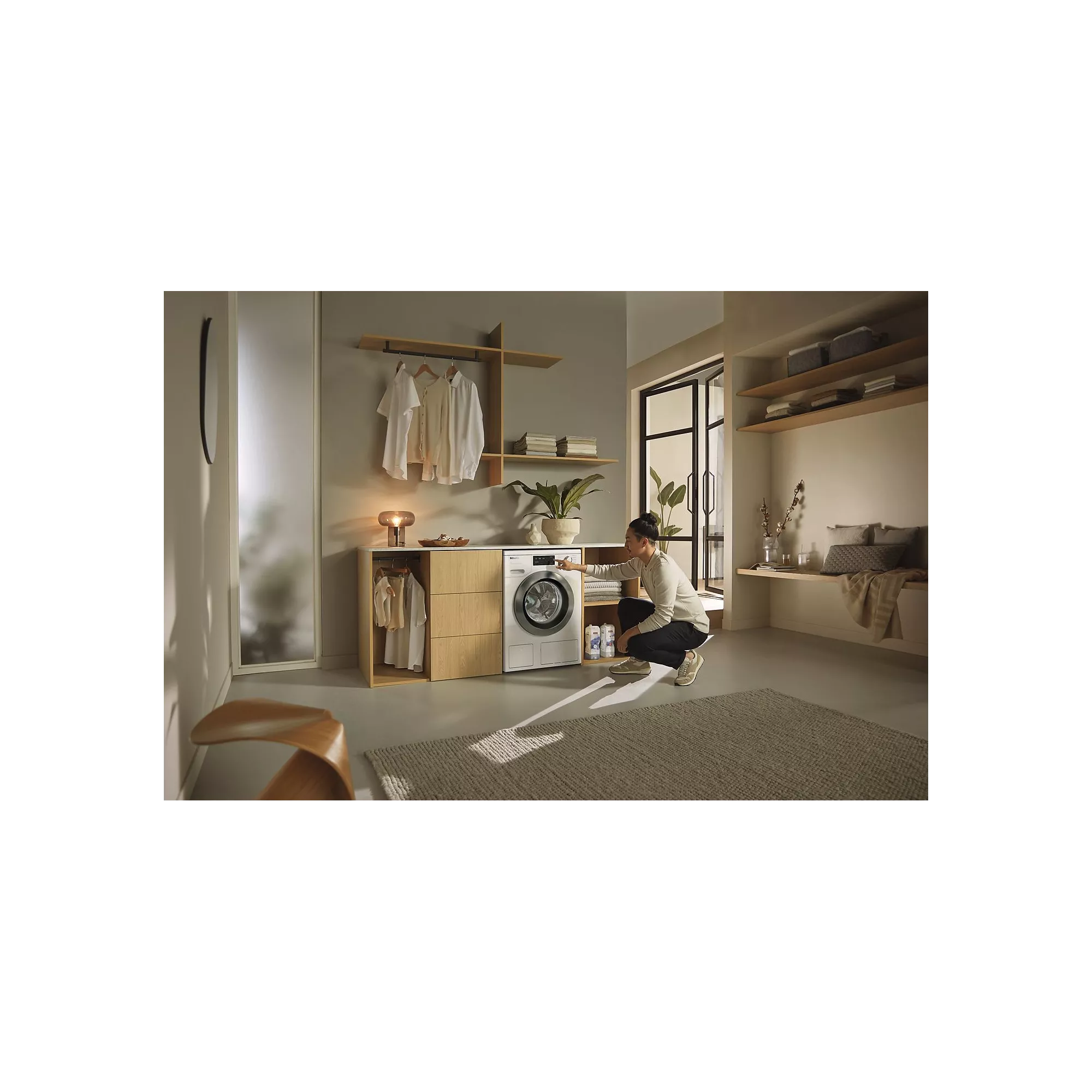 Distributeur automatique de lessive : oui, remplissez le réservoir 1 fois pour 20 à 35 cycles. La machine adapte la consommation de produits lessiviels en fonction de la quantité de linge et de l’état de saleté.