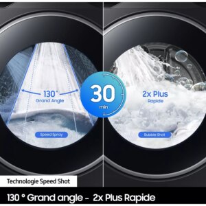 La technologie Ecobubble Samsung transforme la lessive en mousse ultra-performante même à basse température, respectant le linge tout en réduisant la consommation d’énergie.