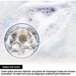 - Ecobubble : transforme la lessive en mousse ultra-performante, même à basse température. Vous respectez votre linge tout en économisant de l’énergie.