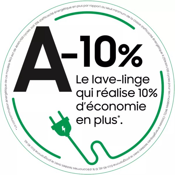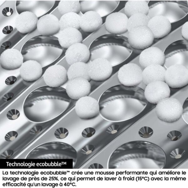 - Ecobubble : transforme la lessive en mousse ultra-performante, même à basse température. Vous respectez votre linge tout en économisant de l’énergie.