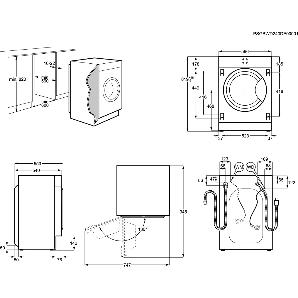• Profondeur avec hublot fermé, débord arrière compris : 54,0 cm