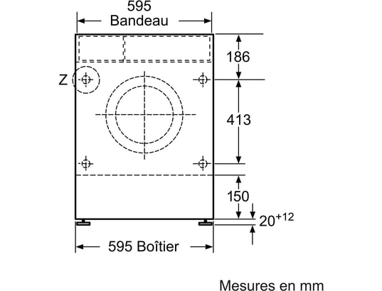 - Profondeur avec hublot fermé, débord arrière compris : 63,5 cm