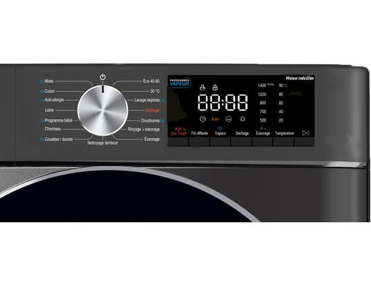 - Défroissage vapeur : oui, il agit en fin du cycle de lavage en adoucissant et défroissant votre linge