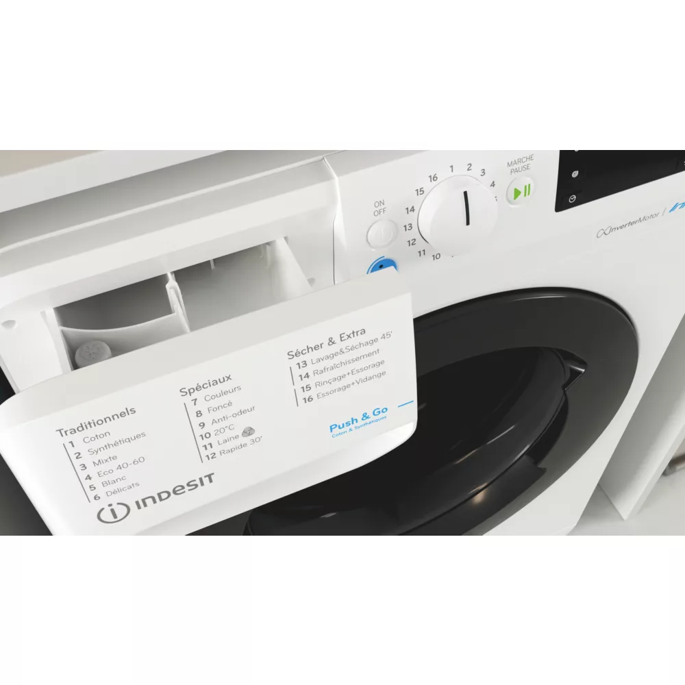 Le Lave-Linge Séchant Frontal INDESIT BDE964359WBFR est aussi prisé pour sa facilité d’utilisation. Grâce à la fonction Push&Go, vous