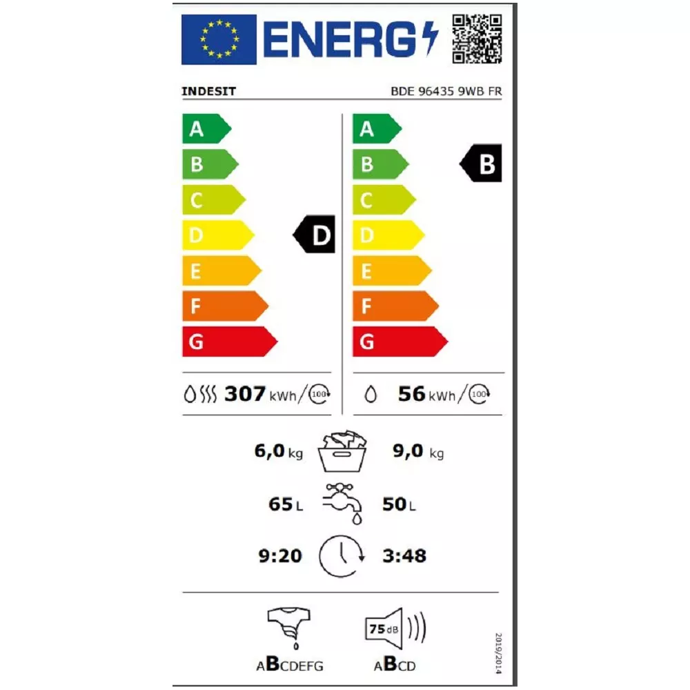 Programmes et options de séchage hublot INDESIT BDE964359WBFR