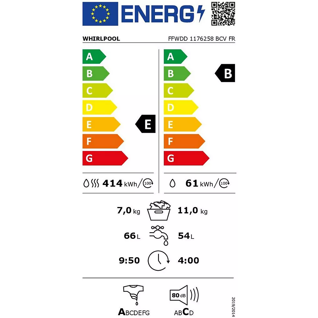- Label énergie lavage et séchage : E