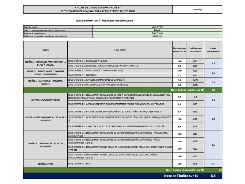 - Indice de réparabilité : 9,3 /10