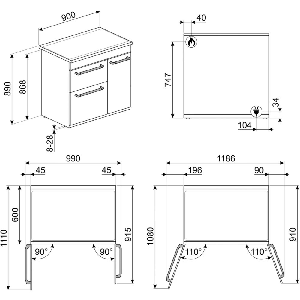 - Type de Produit: Piano de cuisson gaz SMEG CX93GMBL