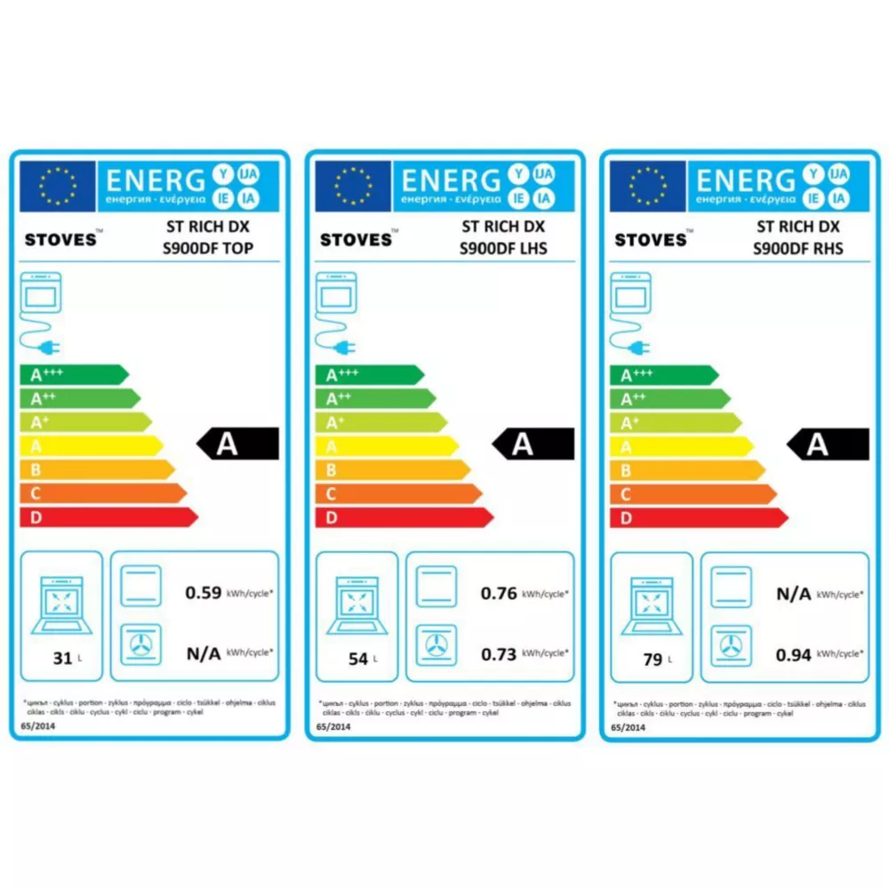 - Valeurs du label énergie : Label énergie A, Consommation en convection naturelle 0,78 kW, Consommation en chaleur tournante 0,88 kW
