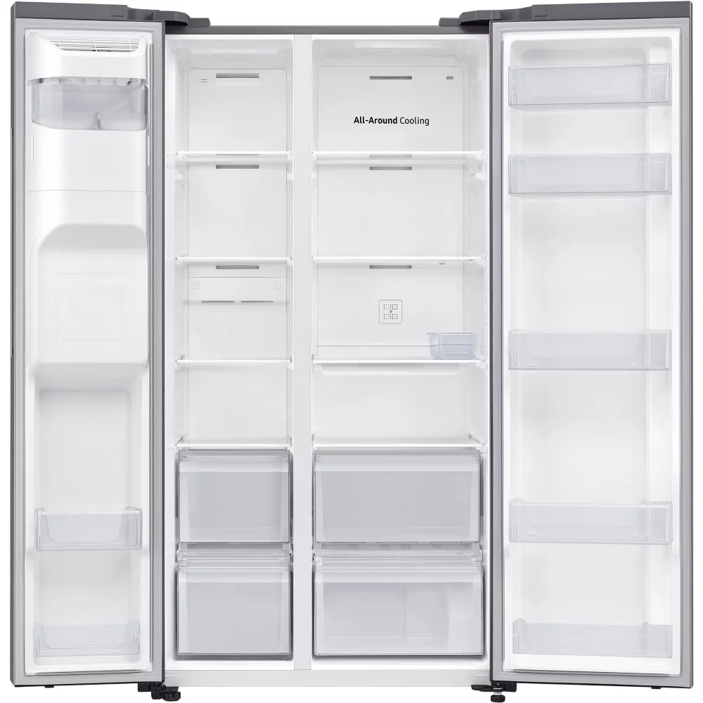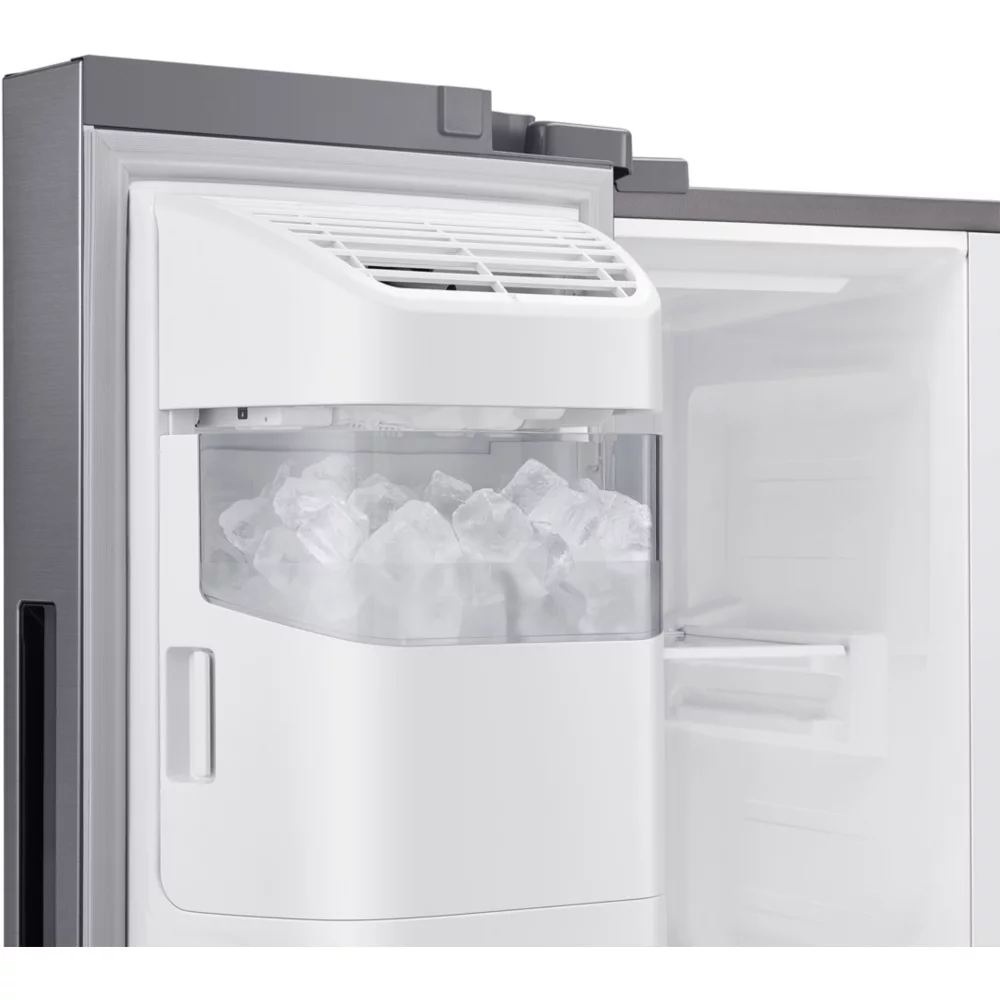 Le Réfrigérateur Américain SAMSUNG RS6EDG5403S9 se distingue par sa capacité exceptionnelle de 635 litres, répartie entre un espace réfrigérateur de 417 litres et un congélateur de 218 litres. Grâce à la technologie de froid ventilé intégral, ce modèle assure une répartition homogène du froid, permettant de conserver les aliments frais plus longtemps et d’éliminer la corvée du dégivrage. La présence d’une fabrique de glace directement dans la porte, associée à un distributeur d’eau, de glaçons et de glace pilée (nécessitant une arrivée d’eau), offre un confort d’utilisation quotidien. Les poignées intégrées et l’alarme sonore de porte ouverte ajoutent une touche de praticité et de sécurité à ce réfrigérateur au design élégant.