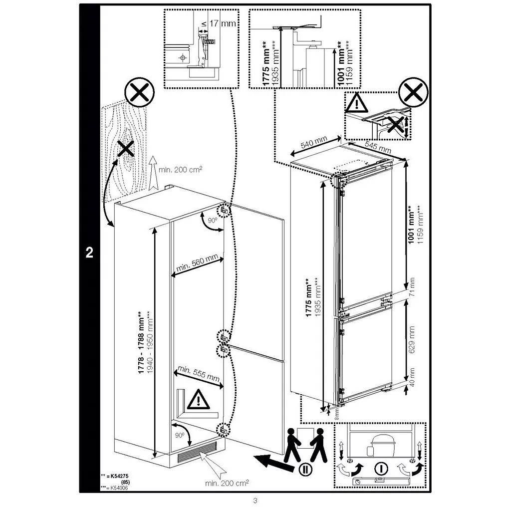• Dimensions d’encastrement l x h x p : 54 x 193.5 x 54.5 cm