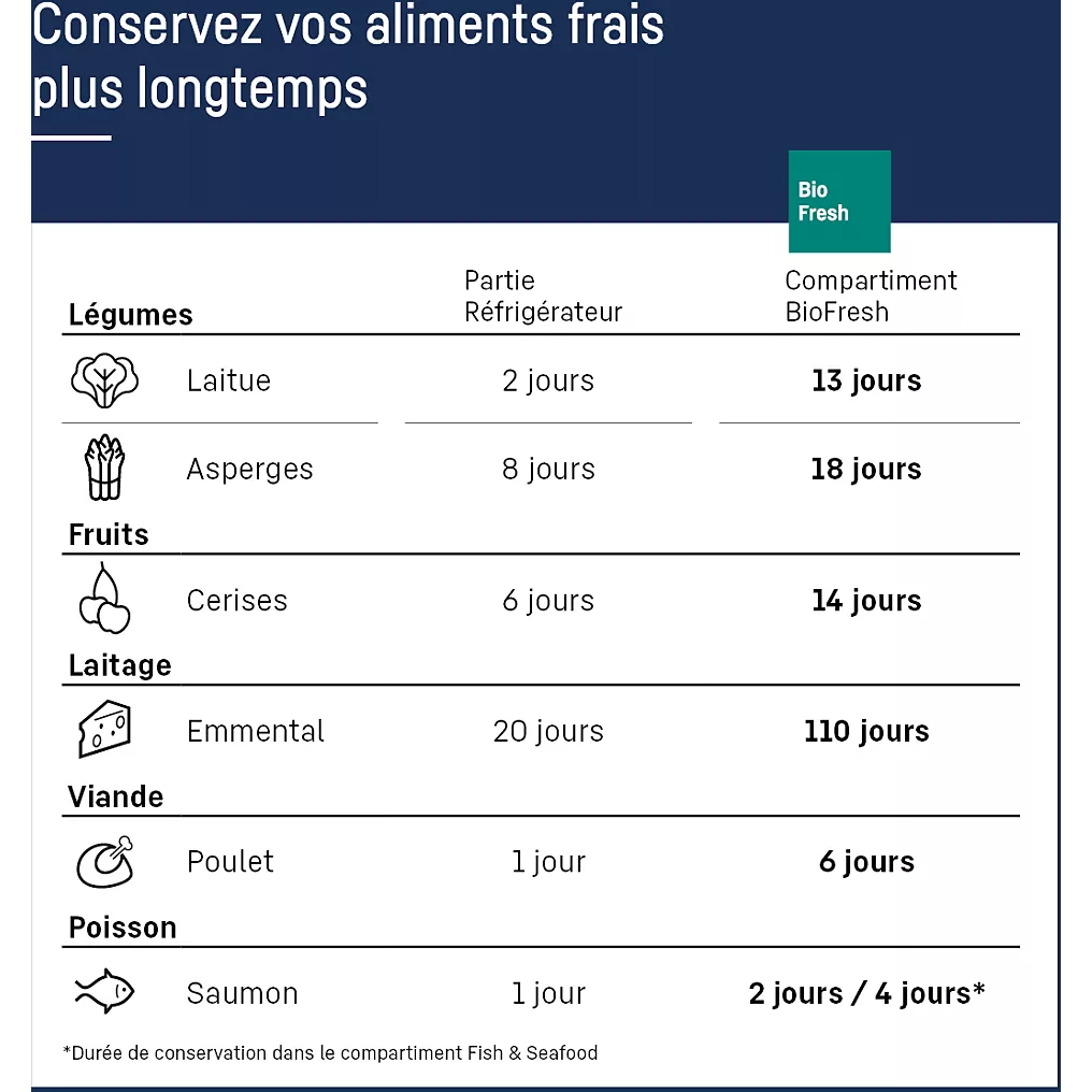 • Le + : Sa technologie Biofresh assure une préservation des aliments jusqu’à 5 fois plus longtemps