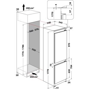 - Dimensions d’encastrement l x h x p : 56 x 177.6 x 55 cm