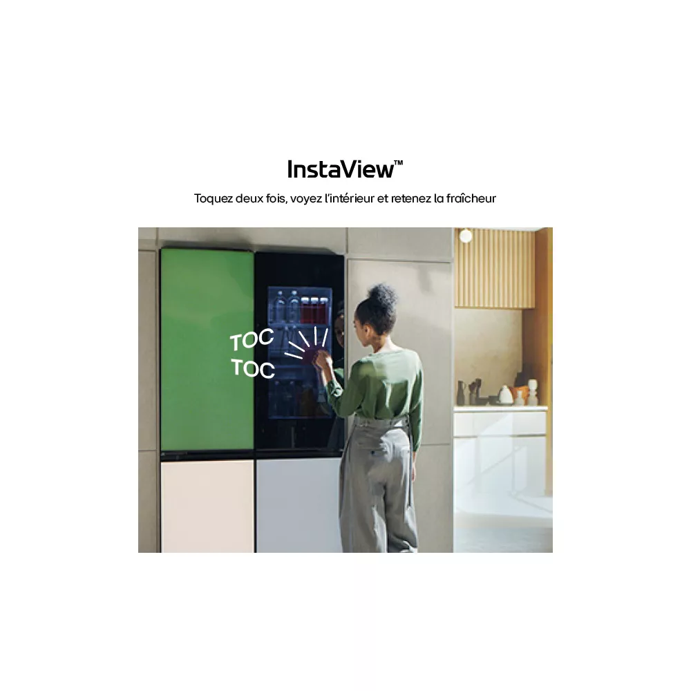 • Instaview : permet de vérifier le contenu du réfrigérateur sans ouvrir la porte, cela limite la déperdition d’air froid. Frappez deux fois sur la porte et l’intérieur s’éclaire.