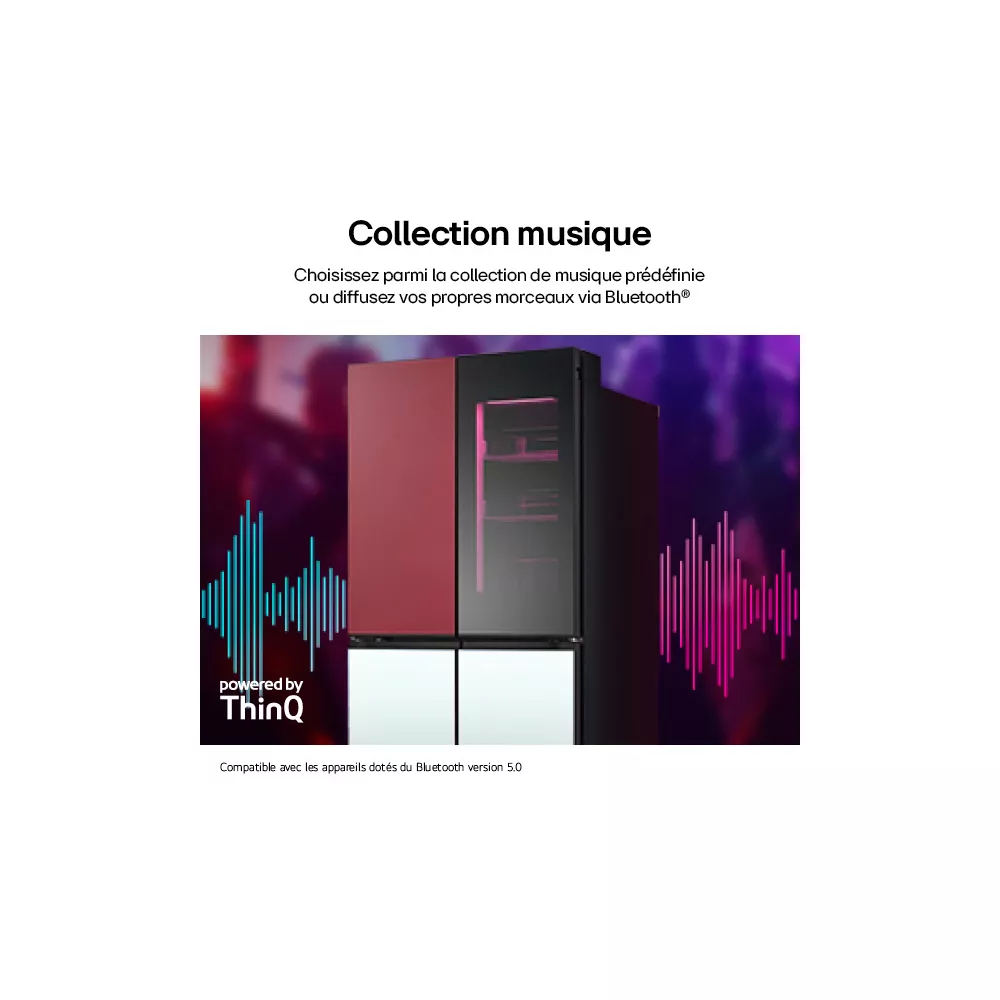 • Le + : Portes LED aux couleurs personnalisables via l’application LG ThinQ™ et enceinte Bluetooth intégrée